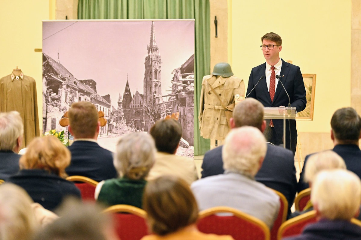 Böröcz László polgármester a megemlékezésen egybegyűltek előtt többek között arról beszélt: „A mai eseményünkön is beszélünk arról, hogy mit tett a háború az emberekkel, a közösségekkel; a történészek kerekasztal-beszélgetése is segít abban, hogy megértsük, mi történt és miért nem engedhetjük meg, hogy újra megtörténjen. Budavár túlélte a háborút, újjáépült romjaiból és ma is szépítjük, fejlesztjük. De mindig emlékeznünk kell arra, hogy egy háborúnak nem lehetnek nyertesei. Világosan ki kell mondanunk, hogy soha nem kérünk az olyan döntésekből, amelyek városokat tesznek romhalmazzá és embereket áldozatokká.” Hozzátette, polgármesterként is fontosnak tartja, hogy ne csak a száraz évszámokat ismerjük, hanem azokat az emberi történeteket is, amelyek mögött valódi arcok, küzdelmek és remények vannak. Csak így érthetjük meg ugyanis igazán, miért olyan fontos vigyáznunk arra a békére és közösségre, amiben ma élhetünk.