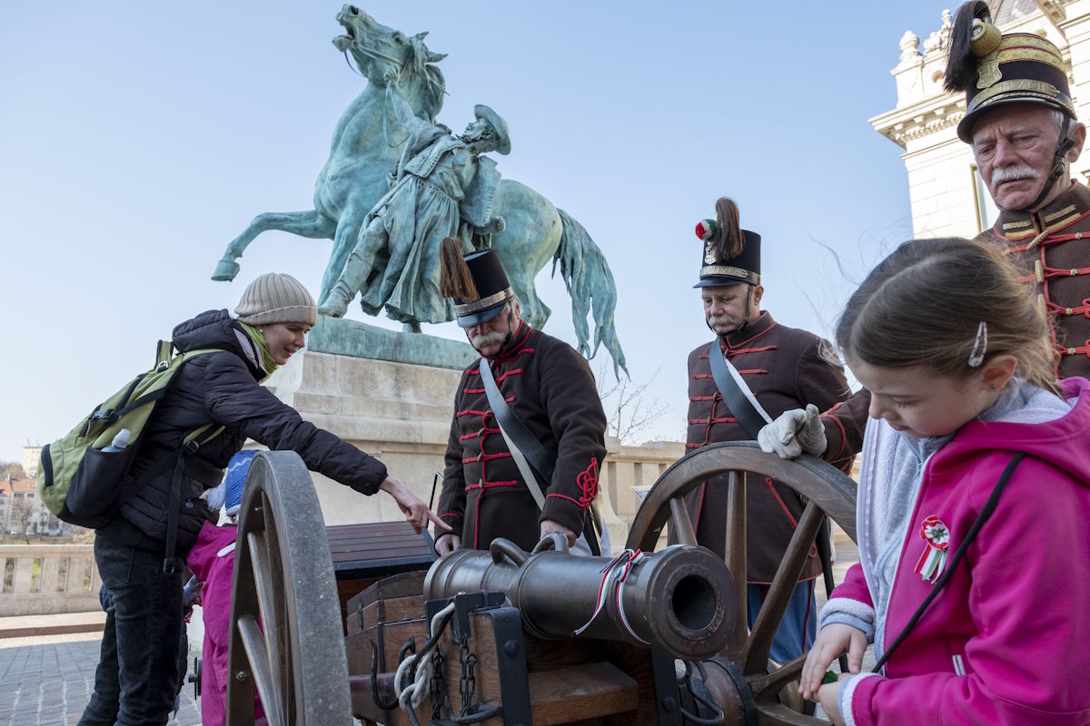 Számos programmal készültek a március 15-re a budai Várban is. A Csikós udvar, a Lovarda, a Szent István-terem és a Várkert Bazár is várta az érdeklődőket. Fegyverbemutatóval és lovas huszárok felvonulásával emlékeztek meg az 1848-as forradalom eseményeiről.