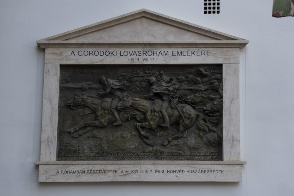 Az 1914-es gorodoki lovasroham emléktáblájának elkészítése Nemes György és Manno Miltiadész nevéhez kötődik. Utóbbi nemcsak kiváló művész, hanem sokoldalú sportoló is volt. Futott, kerékpározott, az 1901-1902-es labdarúgó idény gólkirálya lett, sőt a ’32-es olimpián művészeti kategóriában ezüstérmet nyert Birkózók című szobrával. Az első világháború kitörésekor népfelkelő huszár hadnagyként önként jelentkezett harctéri szolgálatra. 1914. augusztus 17-én részt vett a gorodoki lovasrohamban, ahol súlyos sebesülést szerzett a bokáján, amely véget vetett sportolói pályafutásának. Később azonban művészként idézte fel emlékeit: vázlatai alapján készült az említett bronz dombormű.